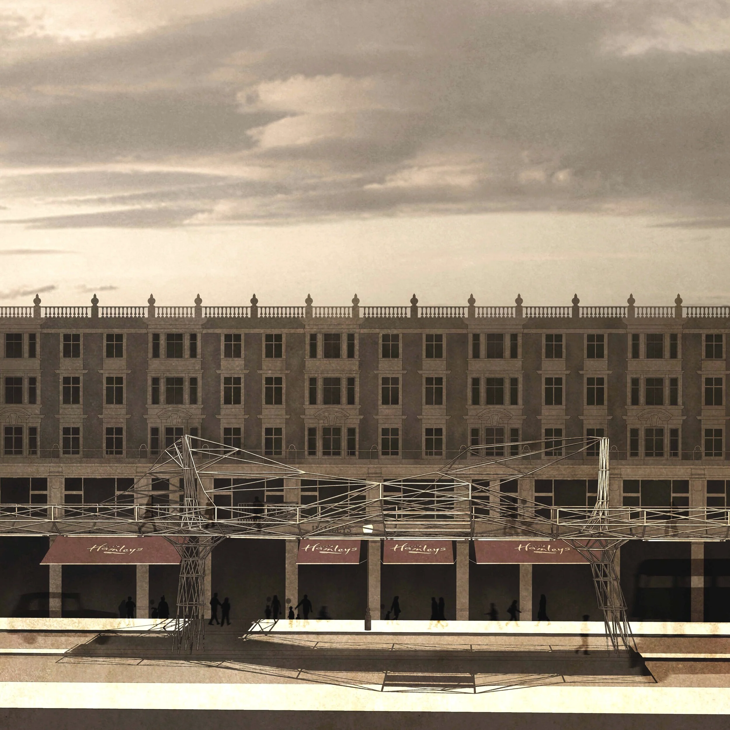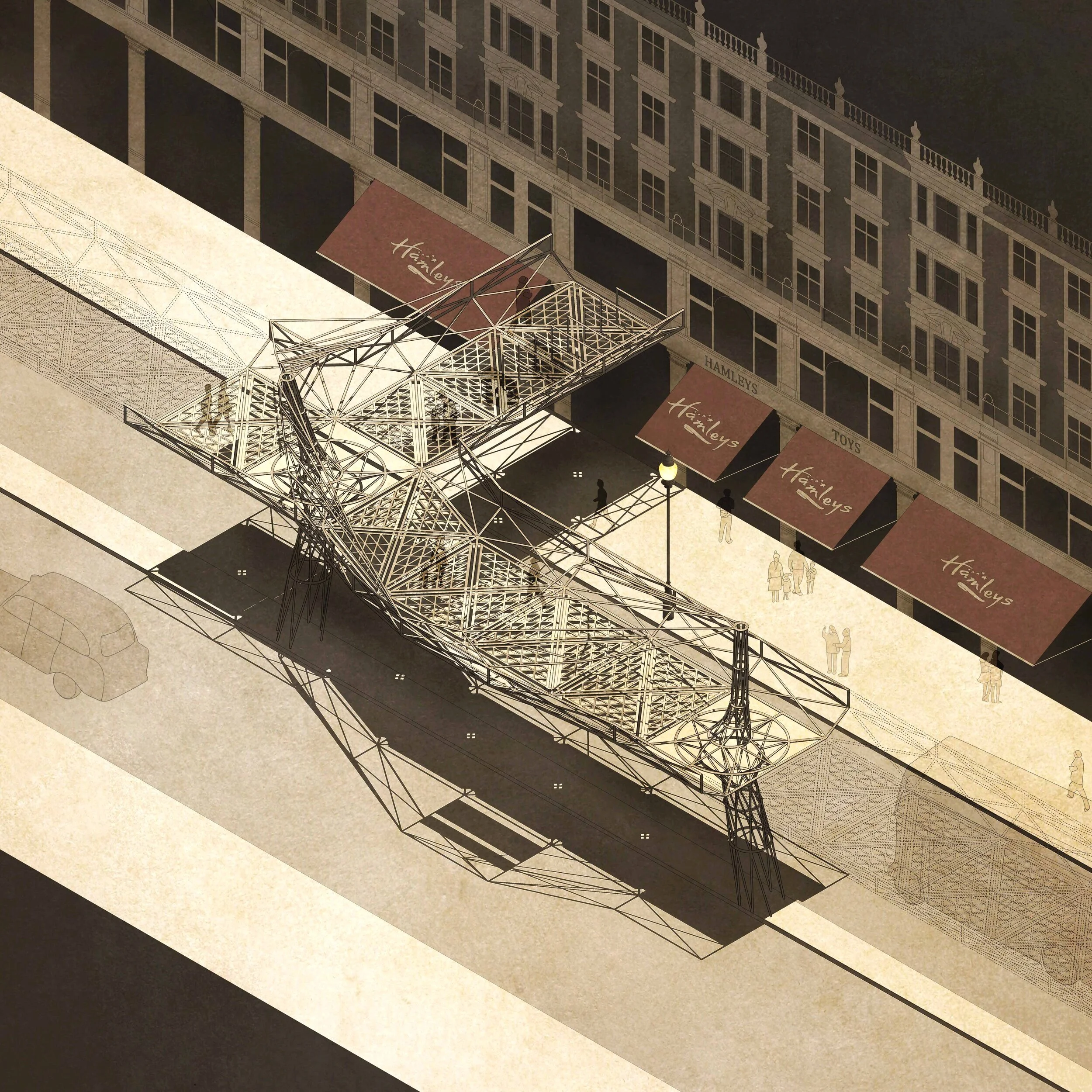 A proposal of creating a upper level event and leisure space as well as a fast track for visitors, in order to reduce the density of population on the ground level and length of time to the destinations.